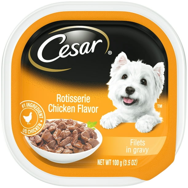 Cesar Soft Wet Dog Food Filets In Gravy Rotisserie Chicken Flavor 3 5 Oz Easy Peel Tray Walmart Com Walmart Com